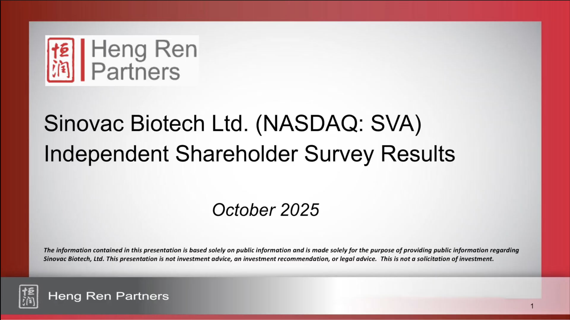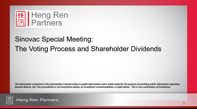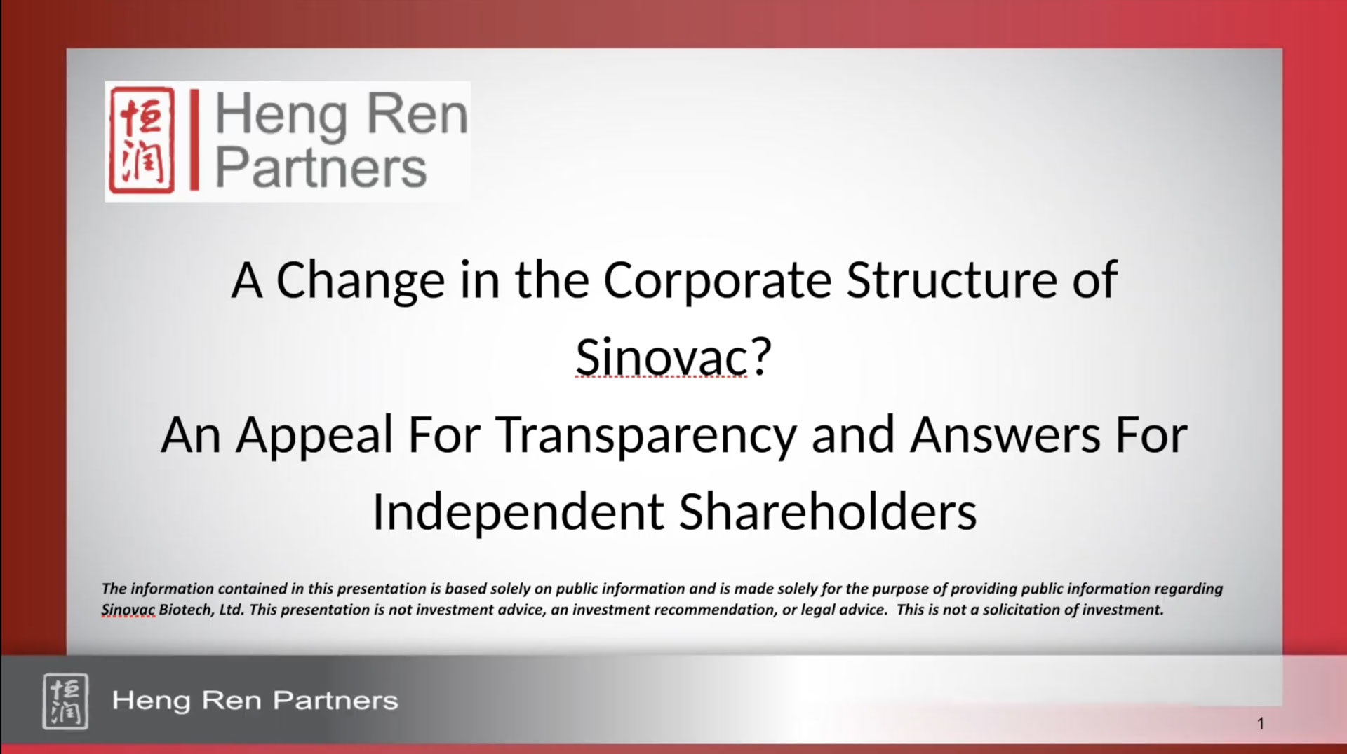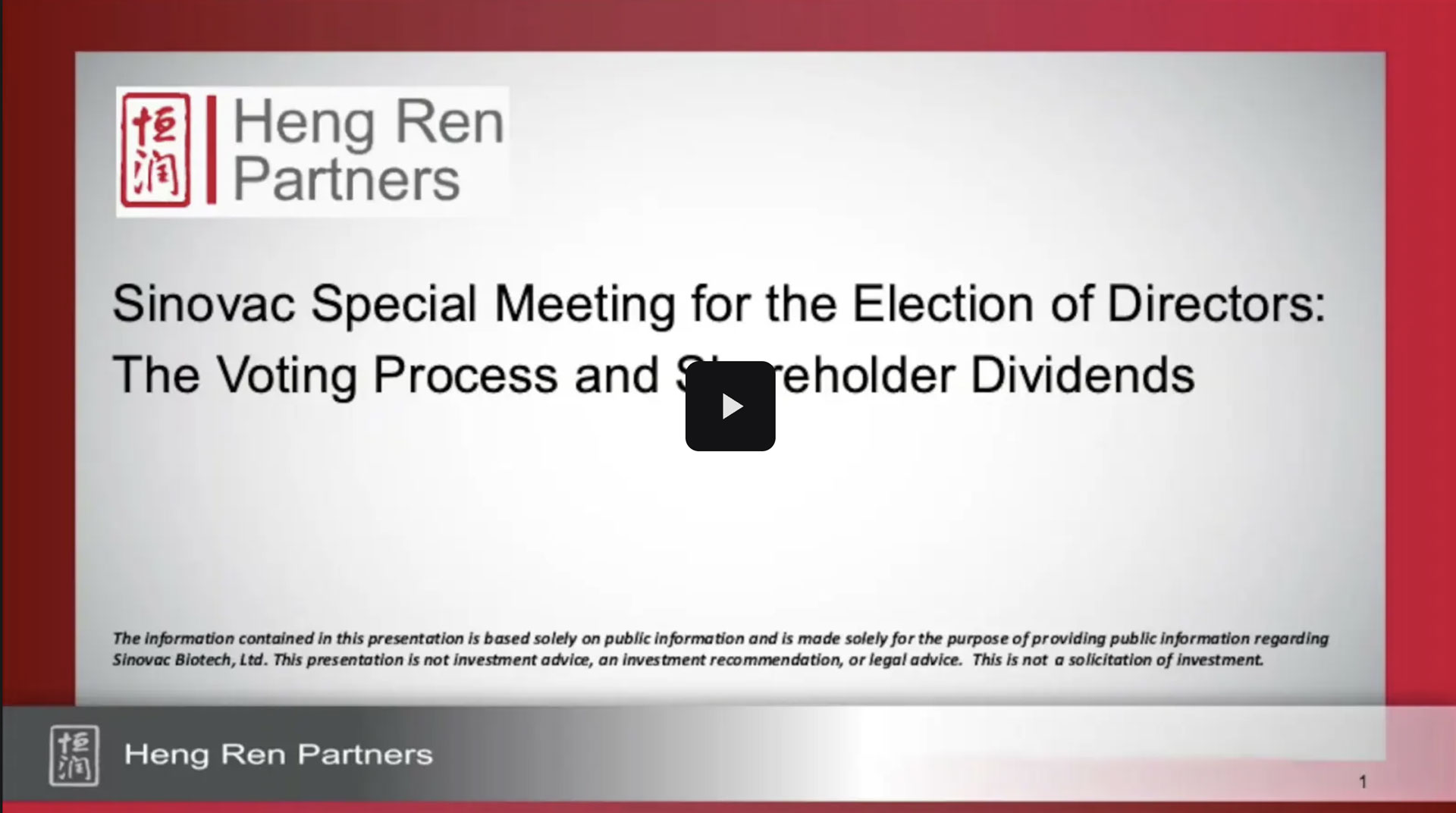 Welcome to the Sinovac Fairness Page, a resource for shareholders and other stakeholders in Sinovac Biotech Ltd. (NASDAQ: SVA) the leading Chinese vaccine-maker. Heng Ren Silk Road Investments is an institutional investor and long-time Sinovac investor advocating for fairer treatment of common shareholders who have weathered years of corporate turmoil and unfortunately sacrificed huge returns.